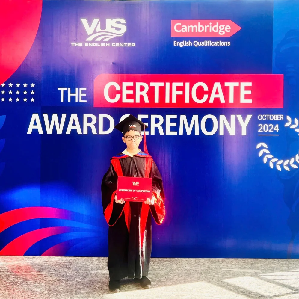 Giờ đây, phụ huynh và học viên VUS có thể gửi hình ảnh, kết quả hoặc chứng chỉ để thành tích ấy được ghi nhận và truyền cảm hứng cho hành trình học tập của nhiều học viên khác. Mỗi câu chuyện là một dấu ấn tiến bộ, tiếp thêm động lực để học viên không ngừng vươn xa. Hãy gửi ngay thành tích của con bạn – hoặc chính bạn – để niềm tự hào ấy lan tỏa mạnh mẽ!
