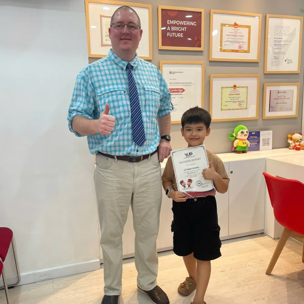 Giờ đây, phụ huynh và học viên VUS có thể gửi hình ảnh, kết quả hoặc chứng chỉ để thành tích ấy được ghi nhận và truyền cảm hứng cho hành trình học tập của nhiều học viên khác. Mỗi câu chuyện là một dấu ấn tiến bộ, tiếp thêm động lực để học viên không ngừng vươn xa. Hãy gửi ngay thành tích của con bạn – hoặc chính bạn – để niềm tự hào ấy lan tỏa mạnh mẽ!